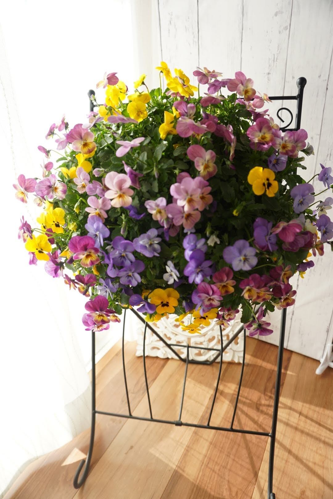 バスケットは吊り下げることができるので、スタンドやフェンスにかけて目線の高さに飾るのがオススメです☆