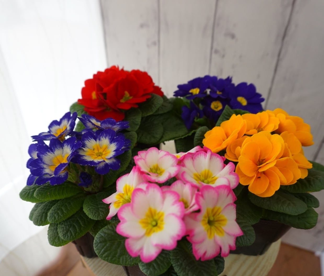 プリムラジュリアン24ポットセット価格です。写真のジュリアン5色でおまかせ24ポットで配送いたします。