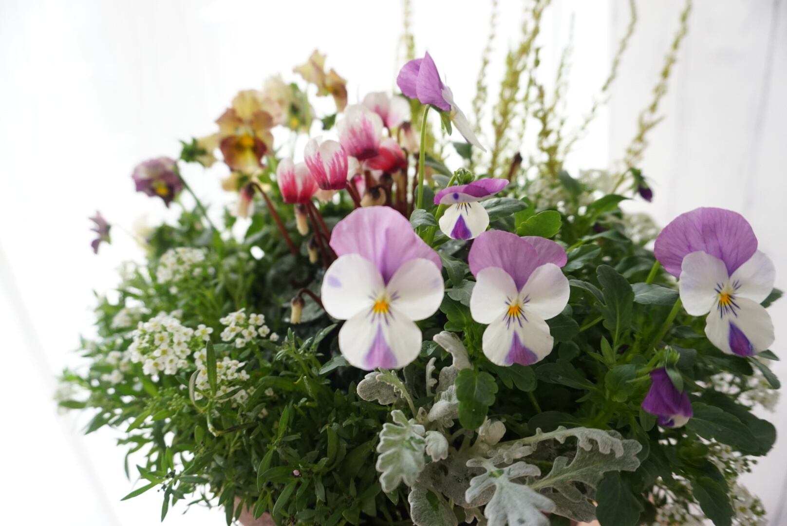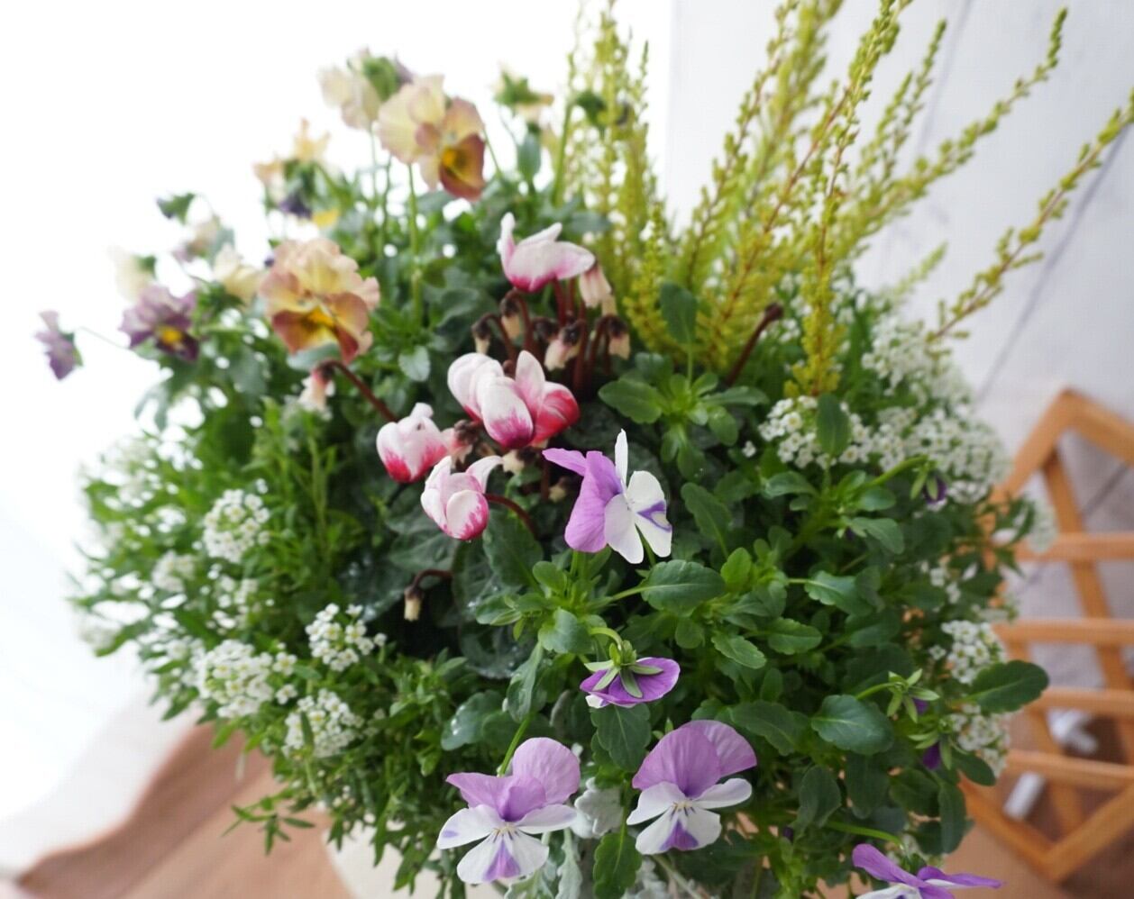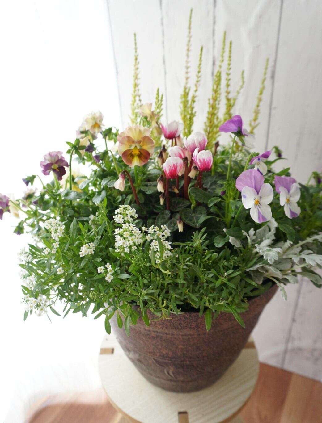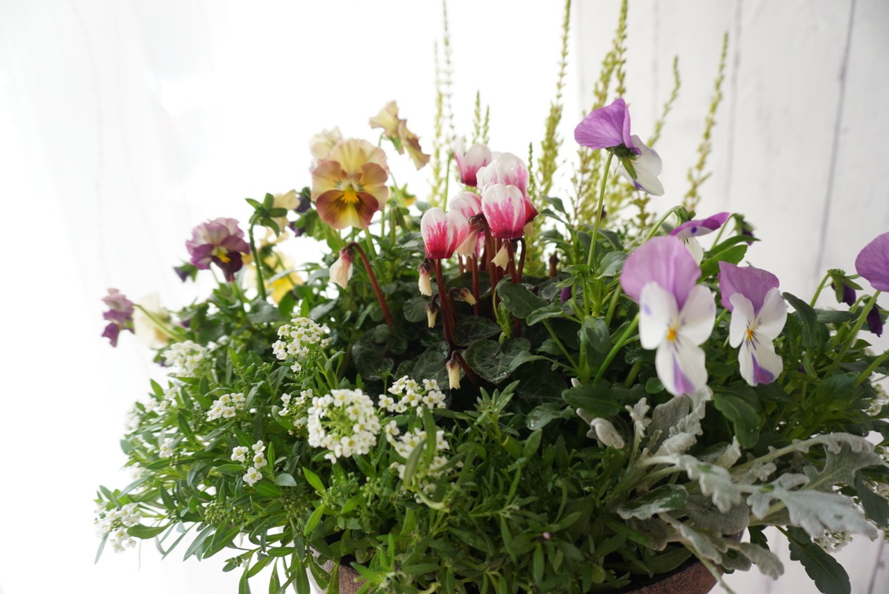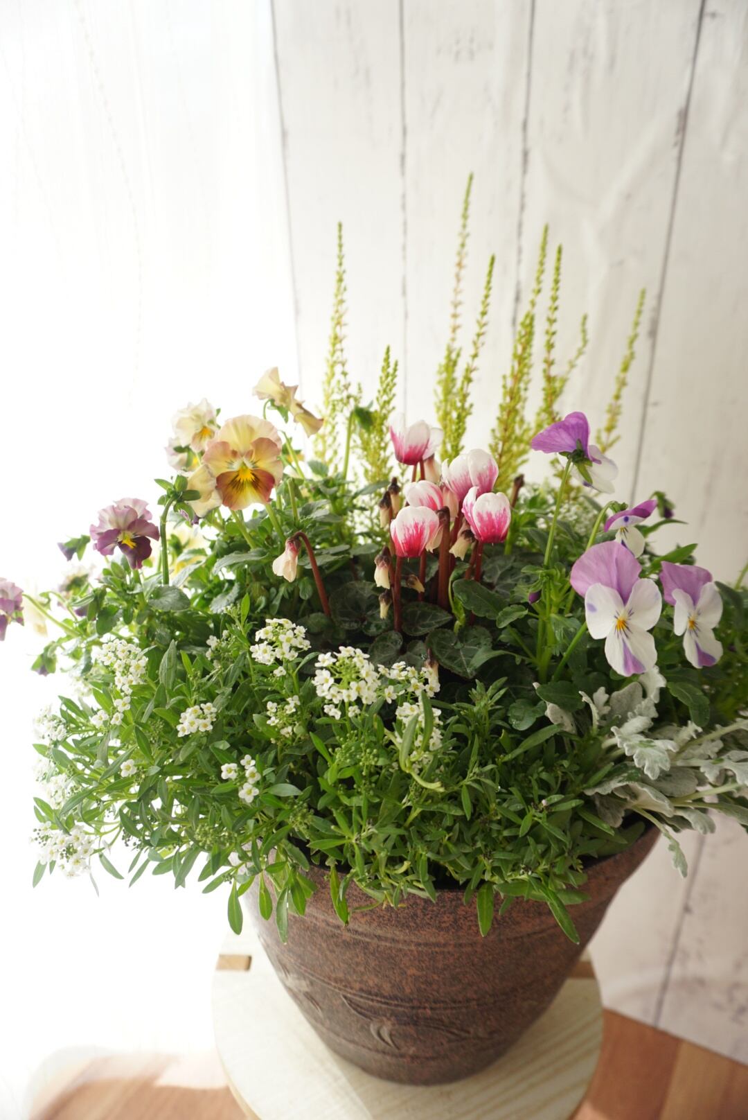ビオラとガーデンシクラメンの寄せ植え〜アンティーク鉢〜