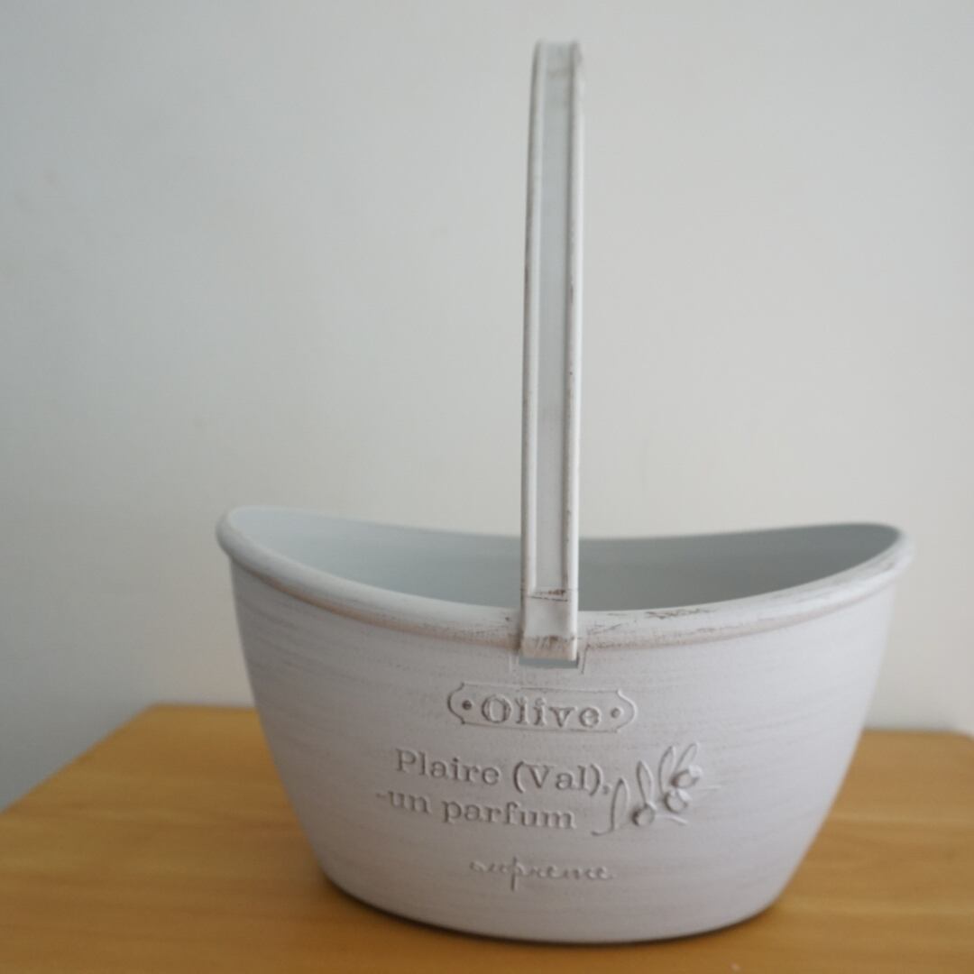 ハンドル付きのおしゃれな植木鉢です。