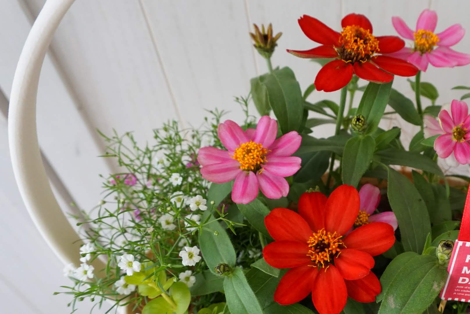 【送料無料】母の日ギフト♪ジニアの寄せ植えバスケット 母の日 寄せ植え 鉢花 フラワーギフト