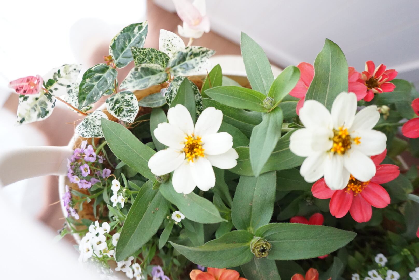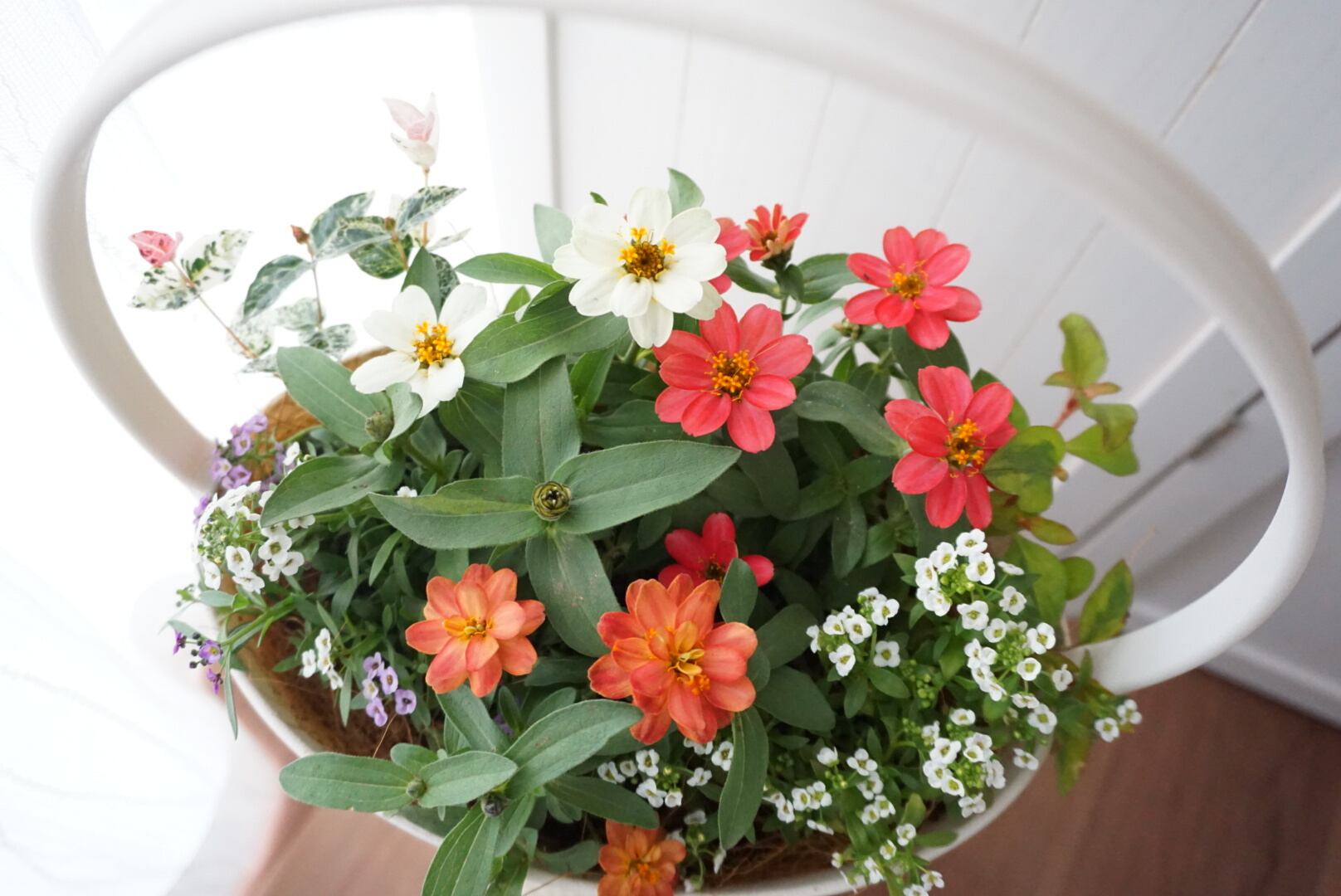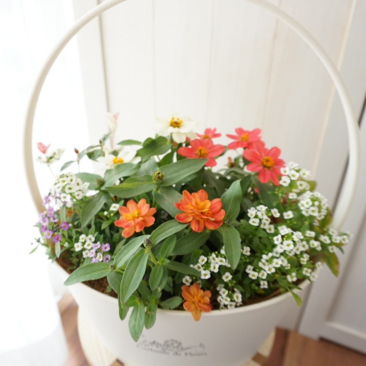 ジニアとアリッサムの寄せ植えです(^^)