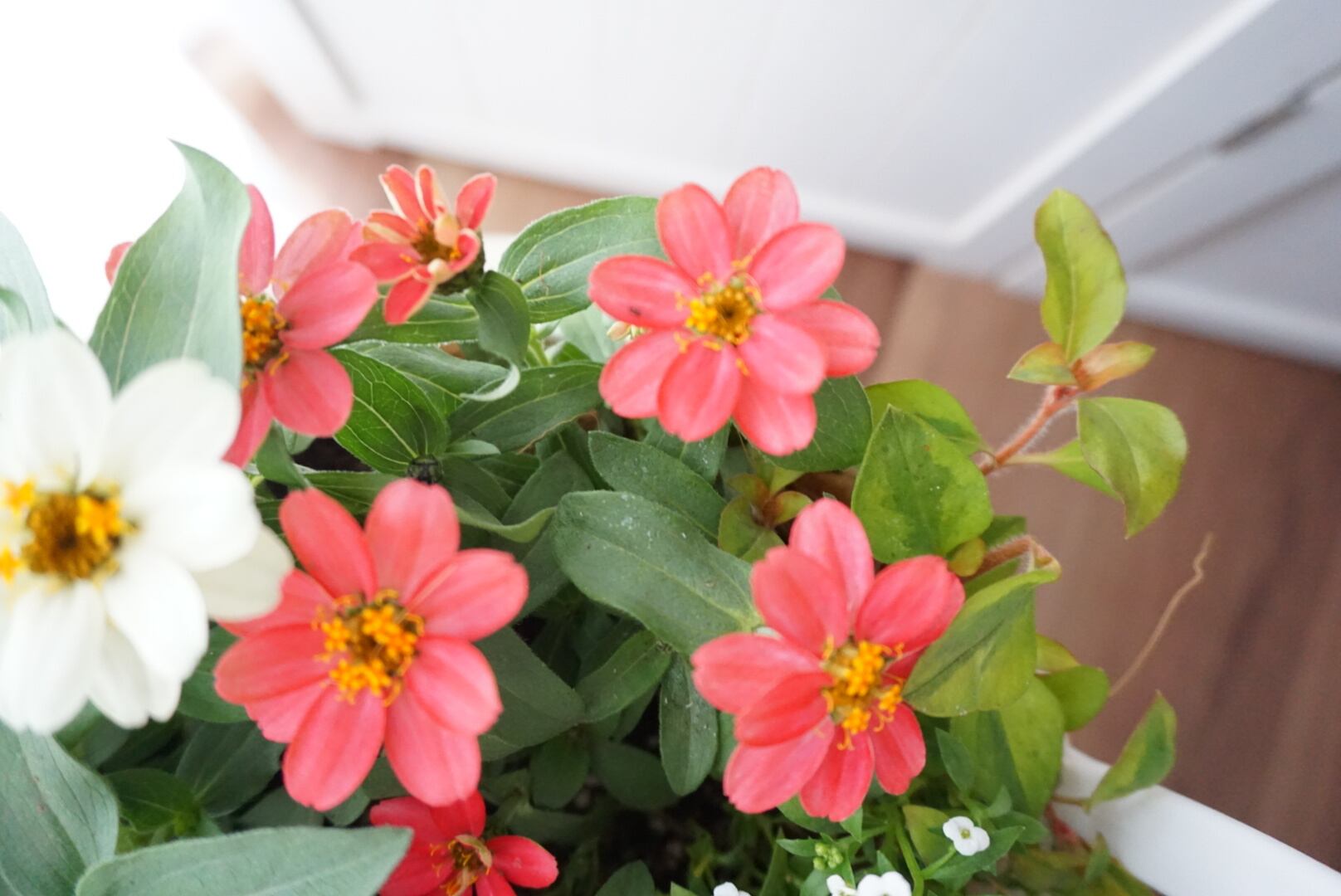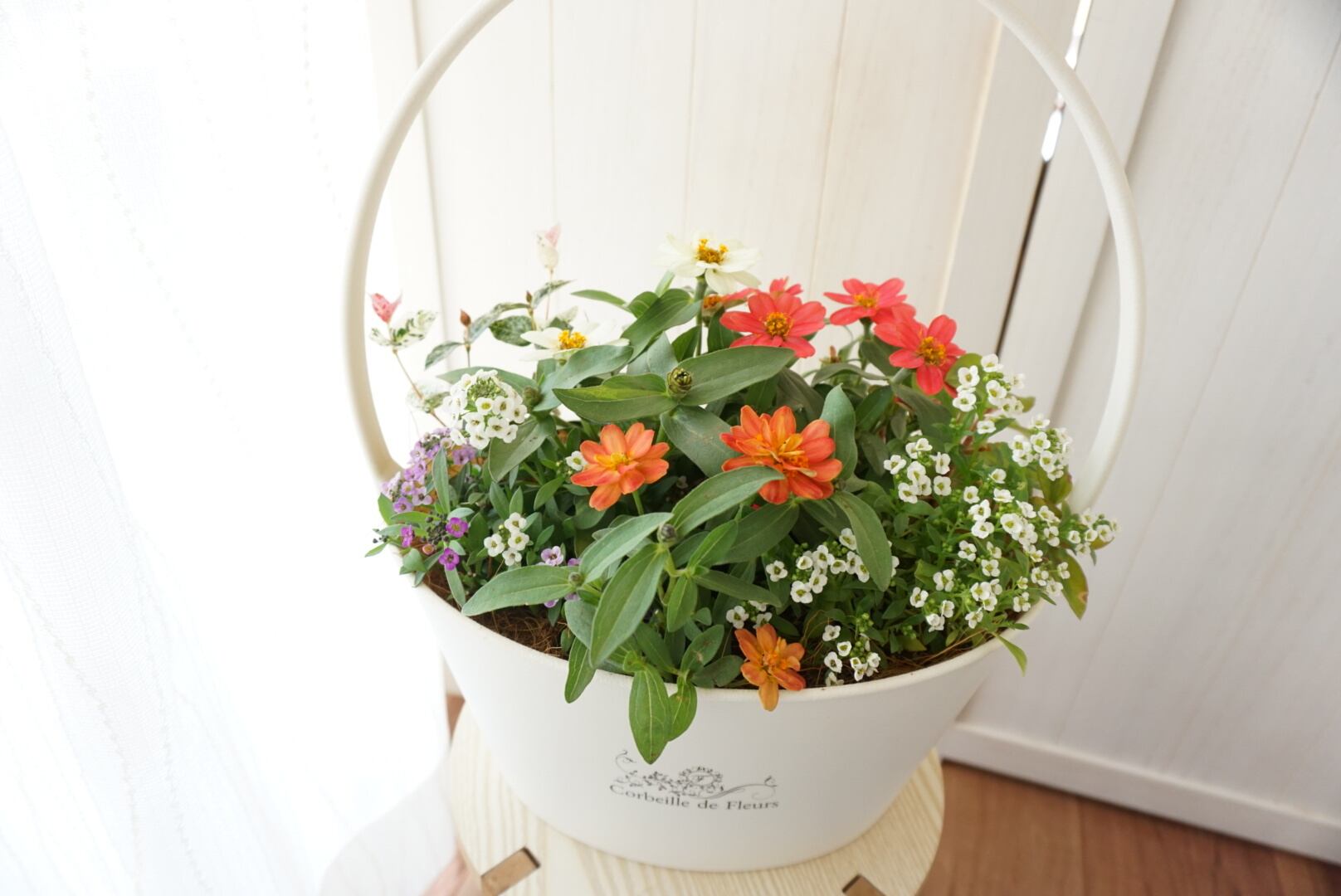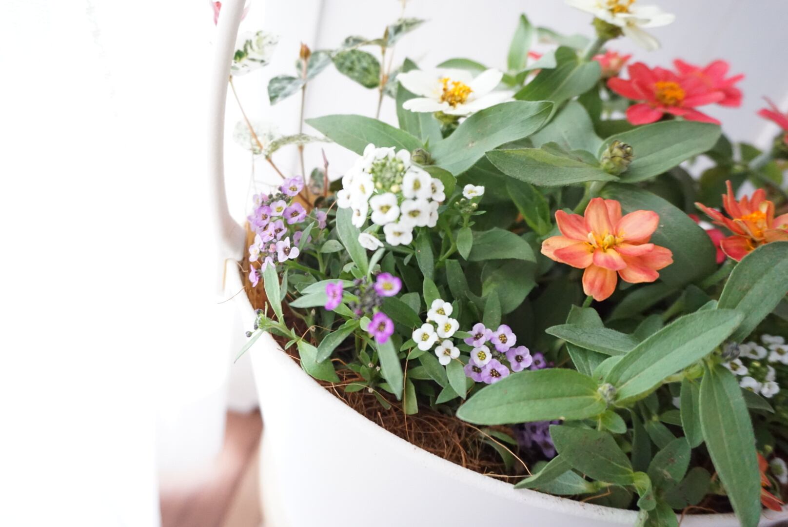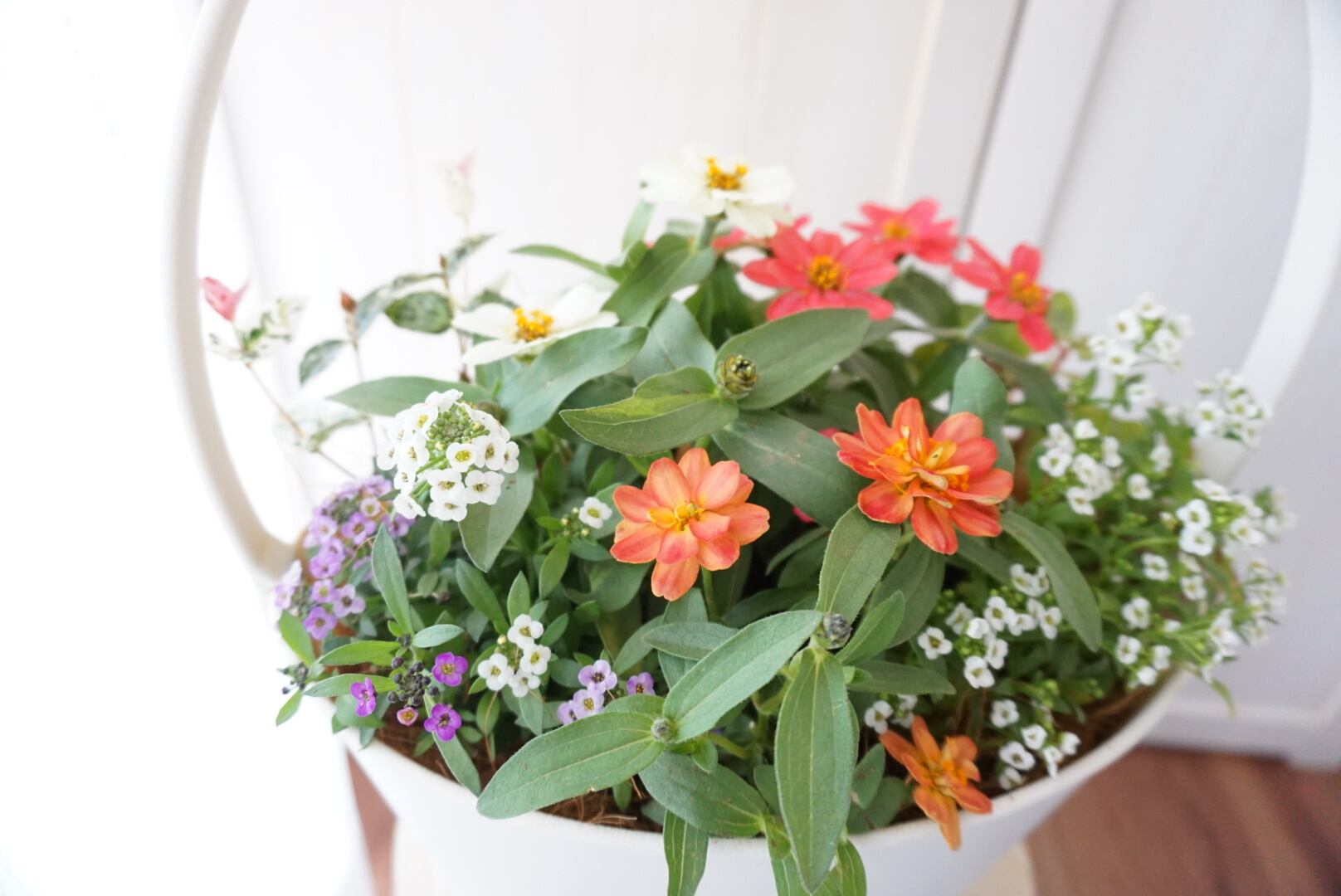 ジニアとアリッサムの寄せ植えです(^^)