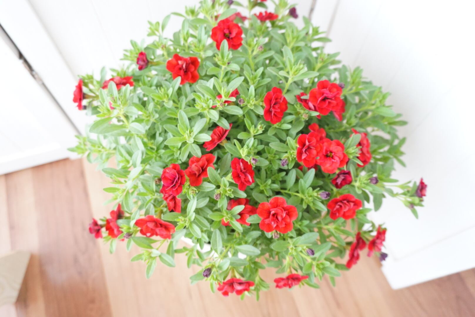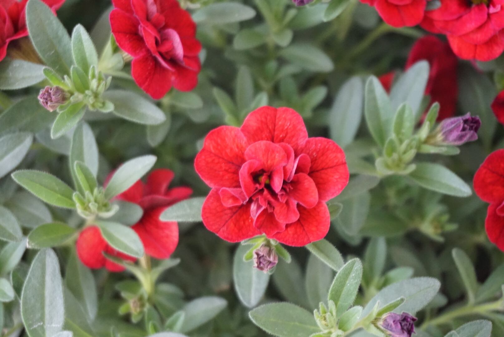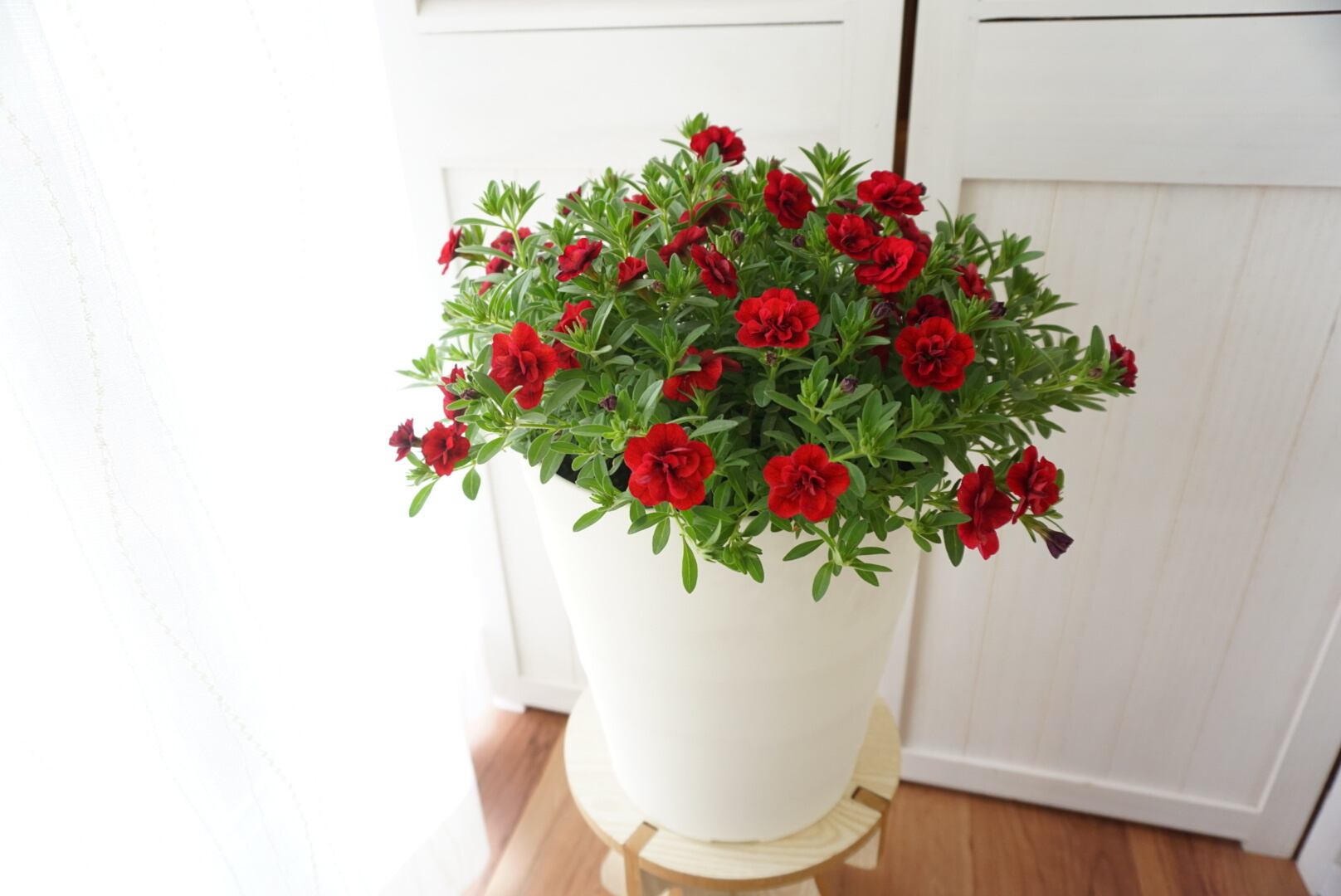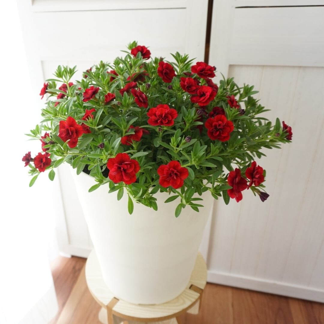 八重咲きカリブラコアの特大鉢です。カリブラコアは花密度バツグン!これから葉っぱが見えなくなるほどお花が咲いてきます(^^)丈夫なので初心者の方でも育てやすいです。