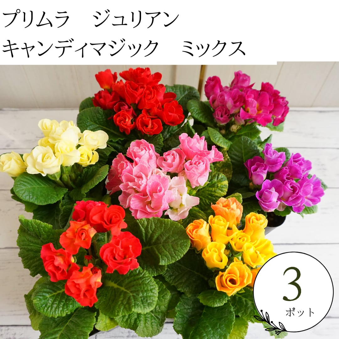 【3ポットセット】プリムラ ジュリアン キャンディマジック 八重咲き バラ咲き まとめ売り 花苗