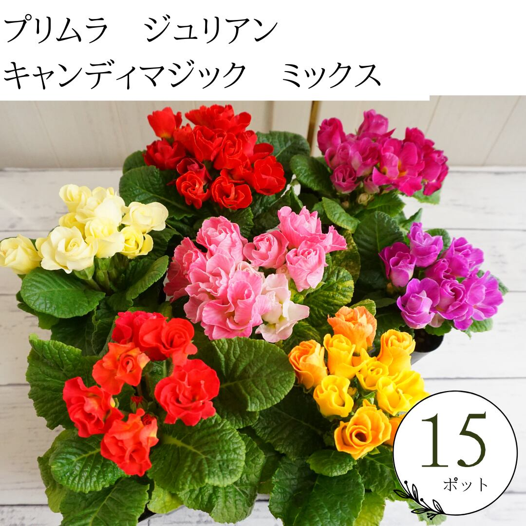 【15ポットセット】プリムラ ジュリアン キャンディマジック 八重咲き バラ咲き まとめ売り 花苗