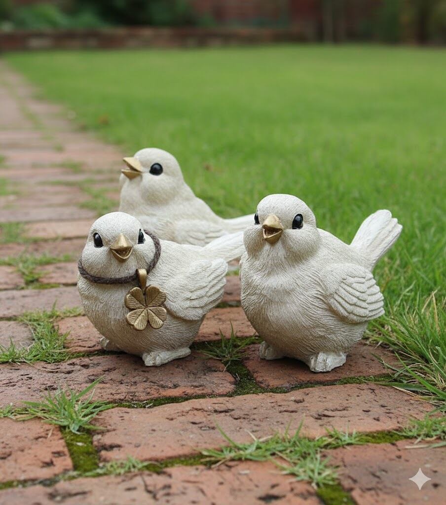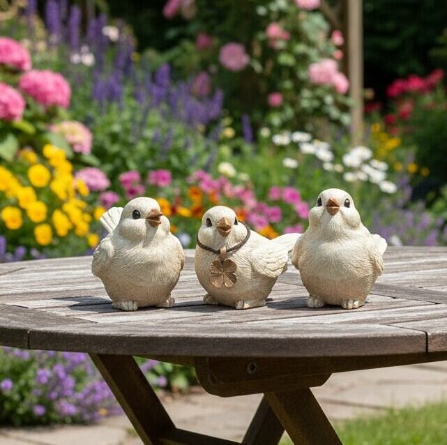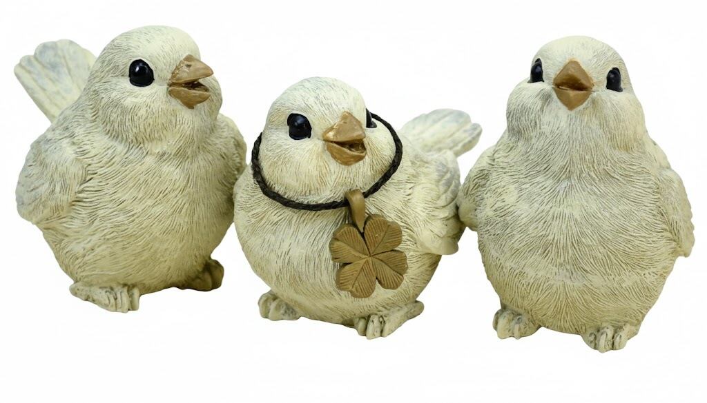 見ているだけで心がほっこり温まる、仲良し3羽の小鳥のオブジェです。 お家の顔である玄関先や、お気に入りのガーデンスペースに、物語のようなワンシーンを添えてみませんか♪