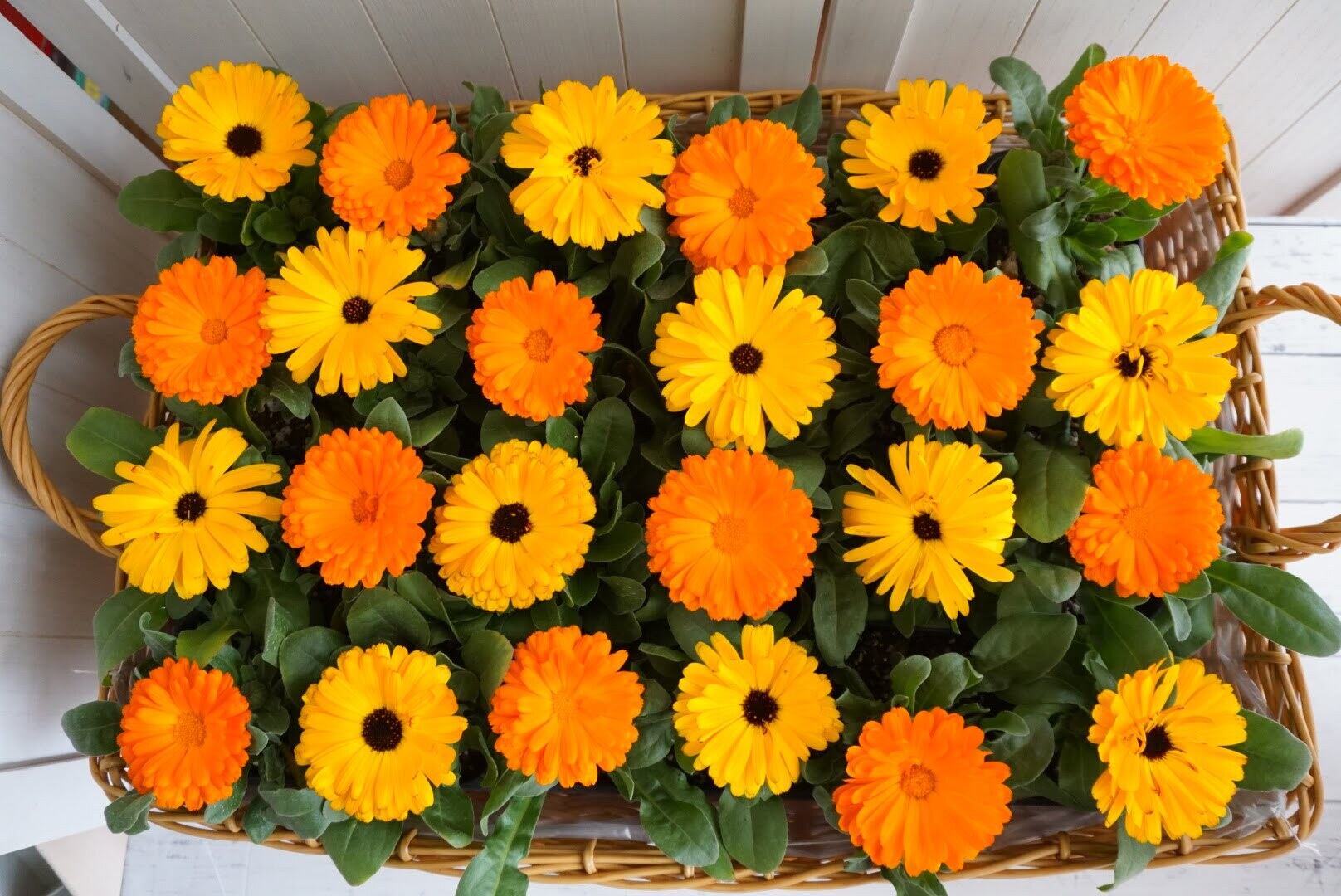 キンセンカ(カレンデュラ)は鮮やかなオレンジや黄色が特徴で、元気をくれるお花です。