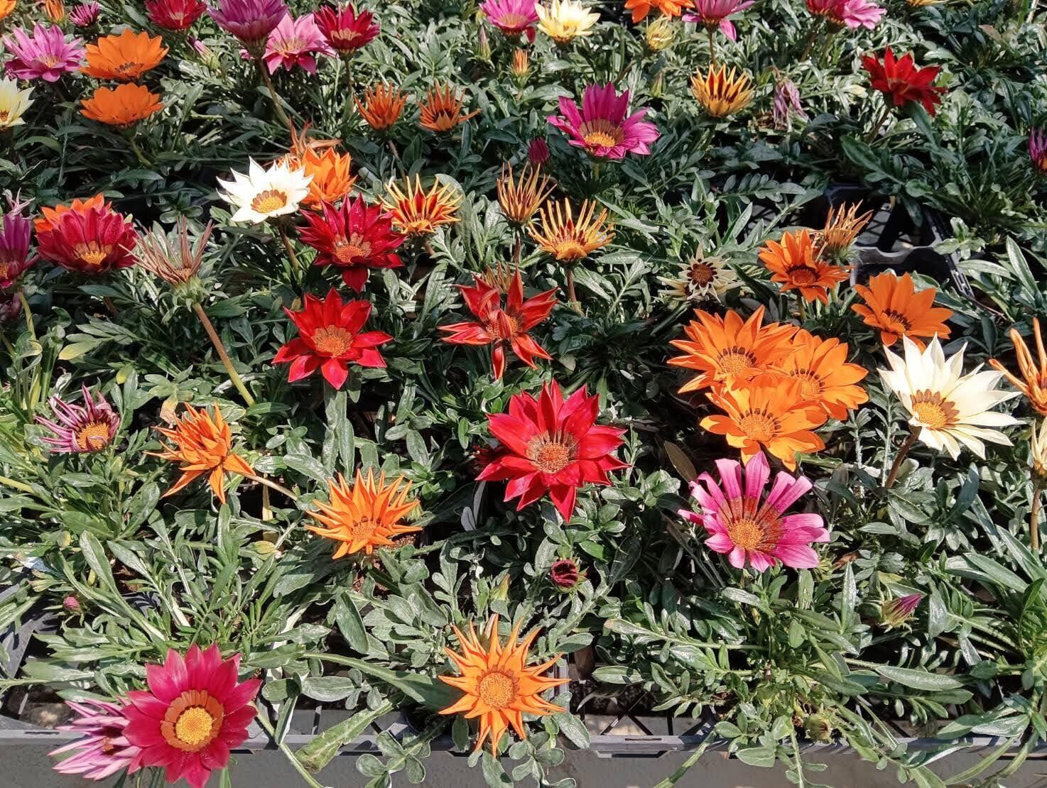 ガザニアは、鮮やかな花を春から秋まで咲かせます。日光が当たるとパッと花が開き、夕方から夜や曇りの日は閉じます。とても面白い性質の花です(^^♪